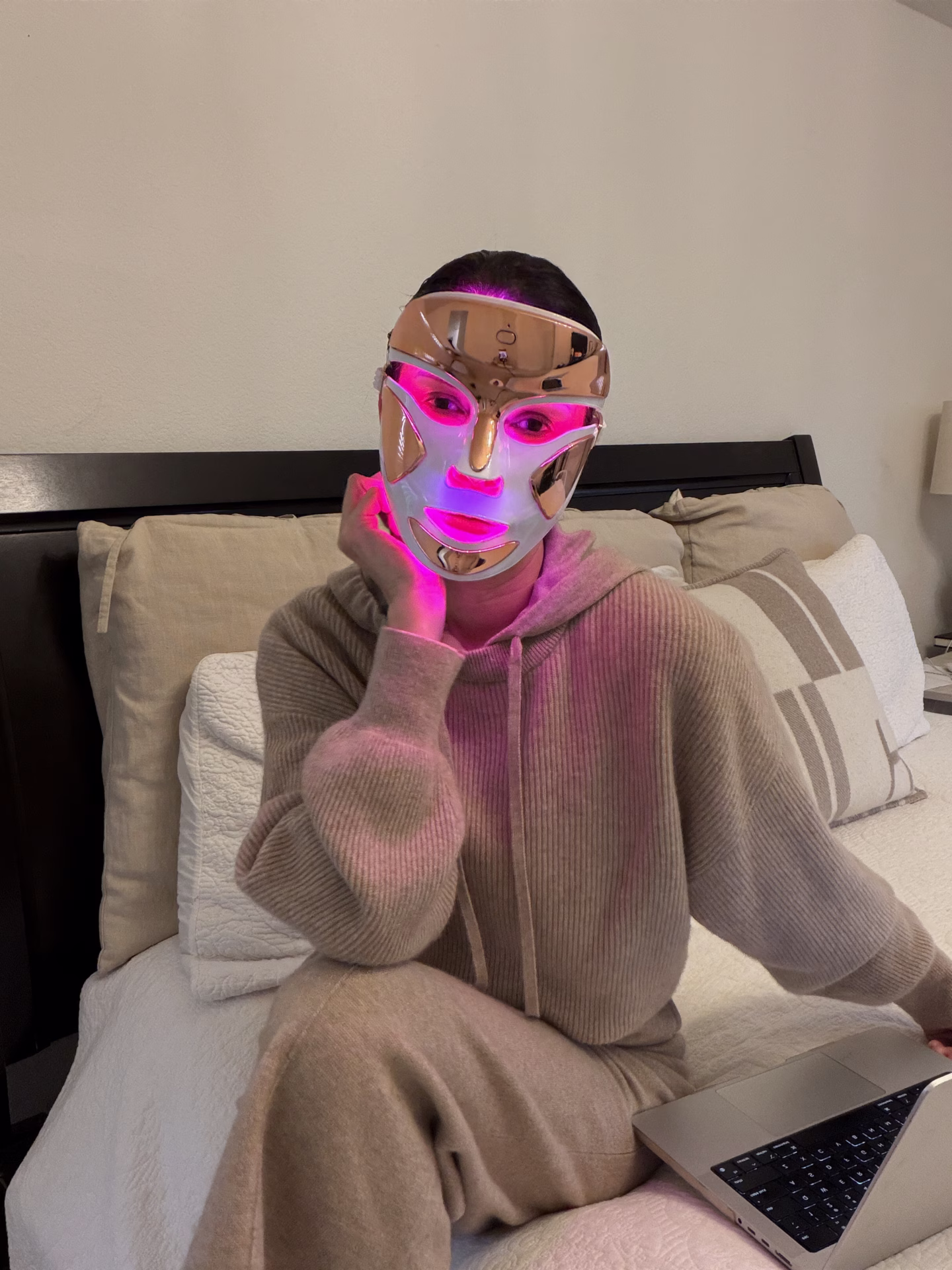 • My typical routine: I cleanse my bare skin, put on the mask, hit the button, and spend 3 minutes answering emails or scrolling on my phone. Then I apply my serums. No complicated steps, no learning curve.