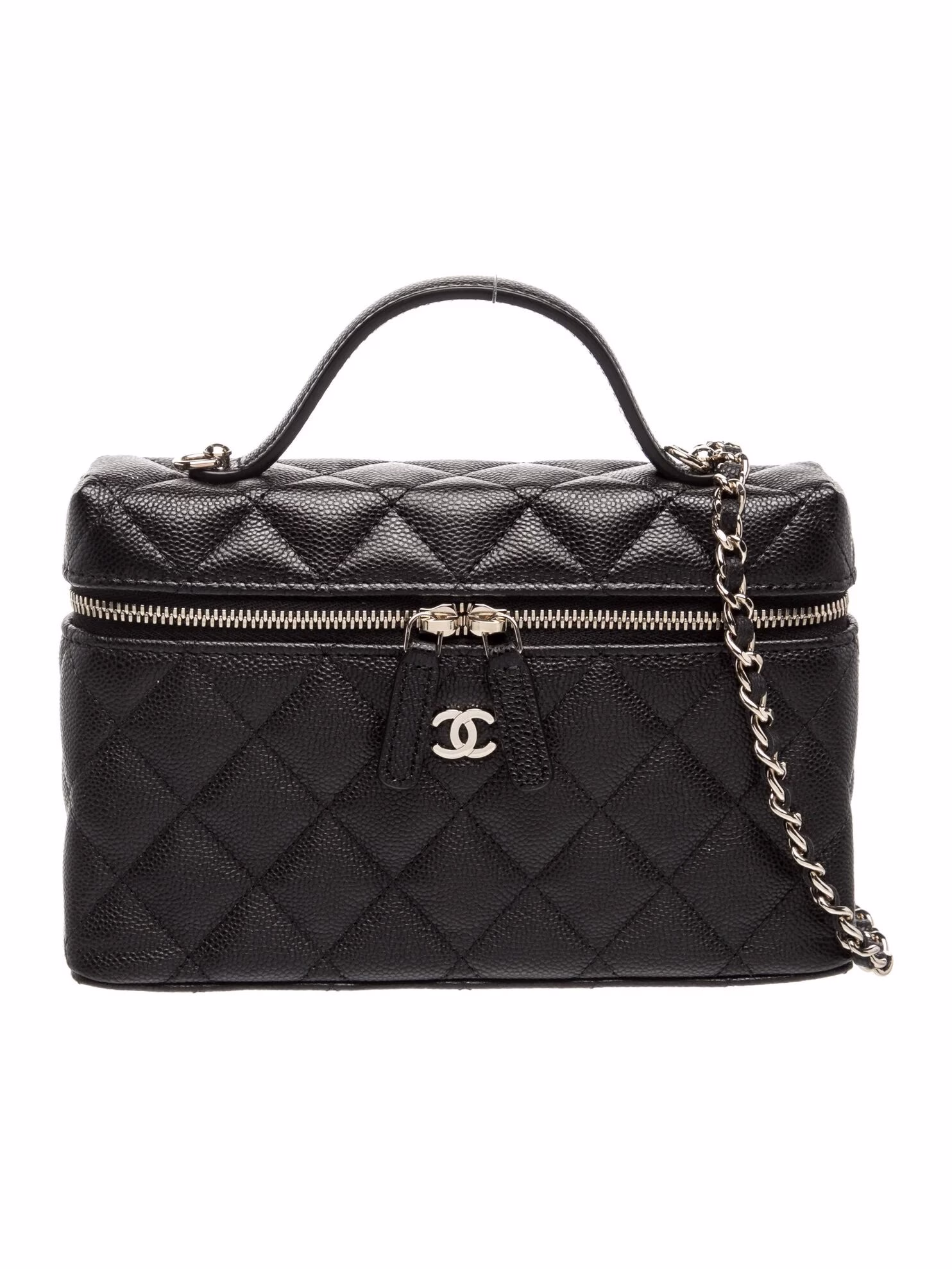 - My haul includes four items: black crocodile-embossed pumps, a beige Chanel 25 mini bag, a black small bowling bag, and a raffia makeup bag with removable chain.
