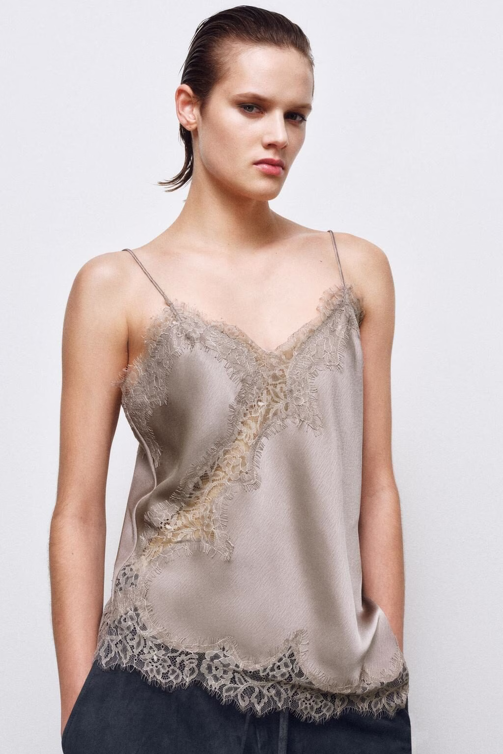 The feminine centerpiece of spring fashion in 2026 is the asymmetrical lace cami. Vogue editors and Pinterest feeds are flooded with these pieces in black, ivory, champagne, and muted pastels—and for good reason. They add romantic texture to any outfit without feeling overly precious or juvenile.