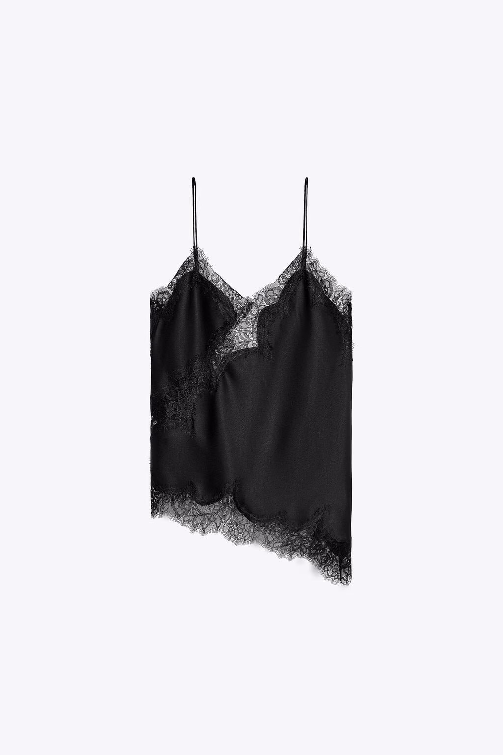• With an asymmetrical lace cami and blazer for date nights or drinks