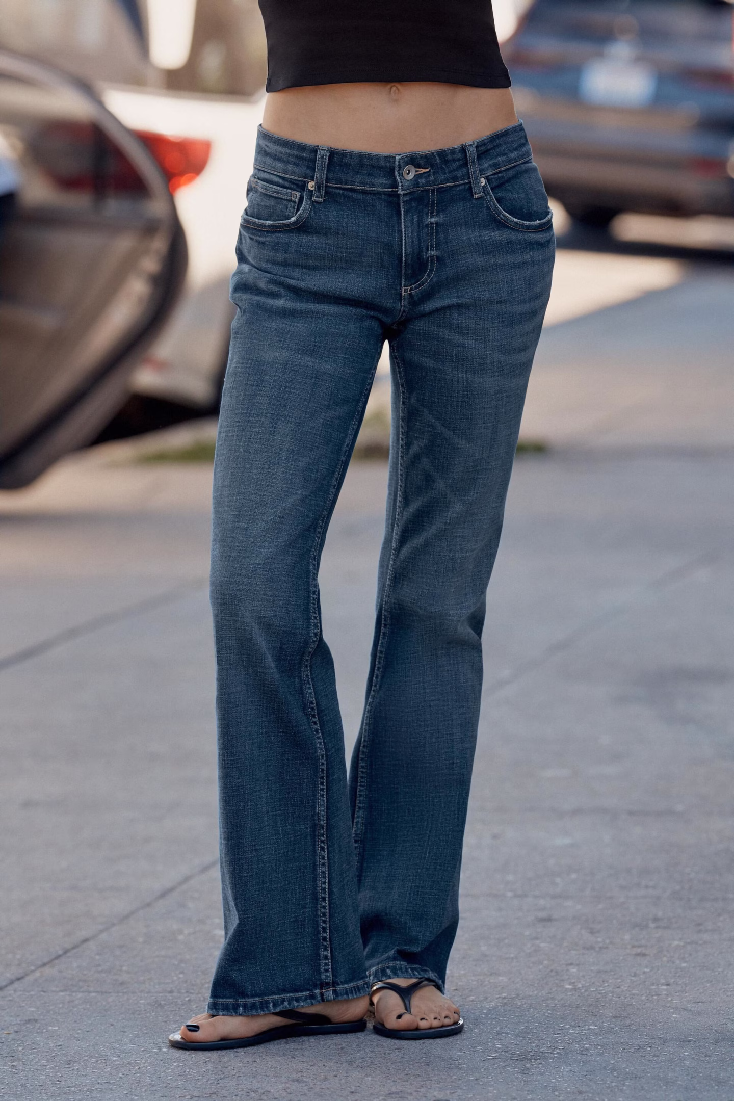 Specific fit details matter here. Look for mid- or high-rise waists (avoid low-rise throwbacks if they feel dated to your eye), a slight flare from the knee down, and full lengths that cover most of your shoe. Popular washes this season include mid-blue, dark indigo, and ecru—though dark washes consistently slim the leg against lighter spring color palettes.